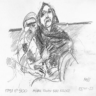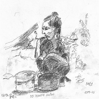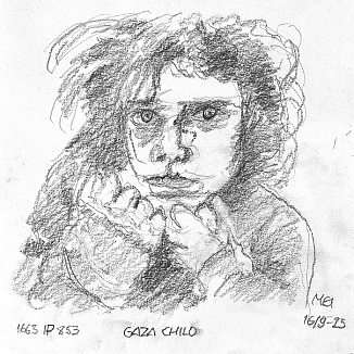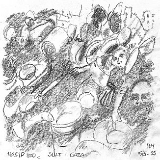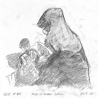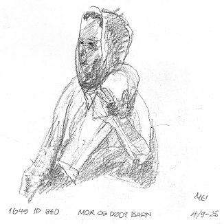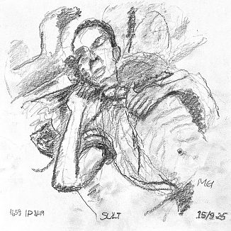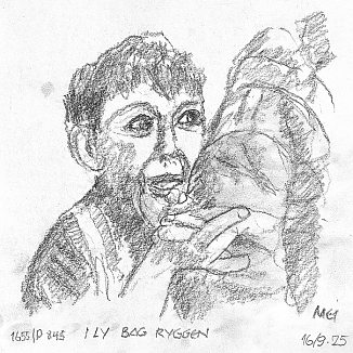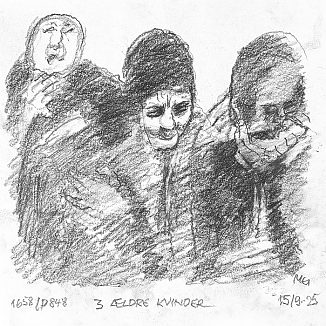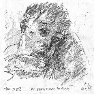 Blyant og kul på papir cirka 29×29 cm. Nyeste tegninger vises øverst!