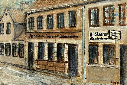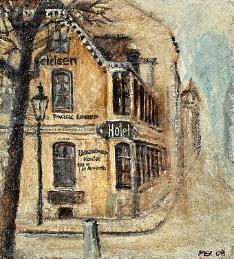 C.M. Christensens Udvandringskontor (omkr. 1900) Senere Kellersgaard, Frederiksgade Spånplade 33,5×30 cm |