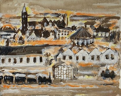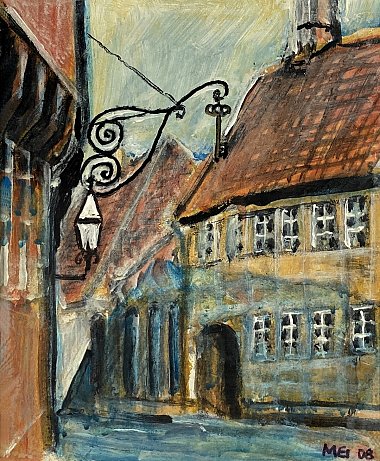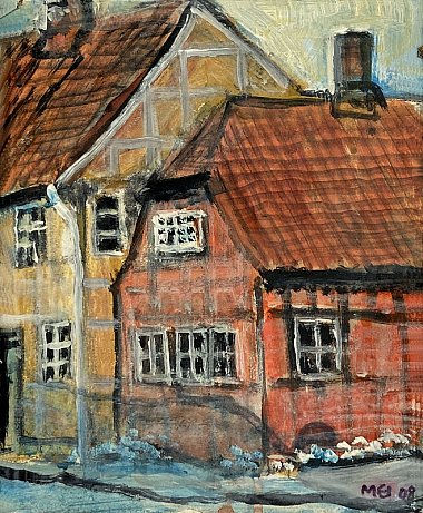 Da Meister gennemlevede sin jernbaneperiode, kom han omkring mange århusbilleder fra 1800-tallet, og det gav inspiration til en række motiver fra det gamle Århus. De er alle malet i 2008-2009, mest små billeder på spånplade og påsat en smal, sort rammeliste.