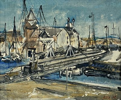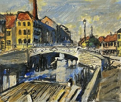 Svingbroen i Århus Havn (1865) Spånplade 21,5×26 cm |