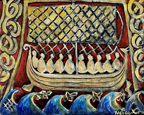 1999: En serie acrylmalerier på papir med 50×40 cm passepartout og aluminiumsramme. Det er kun lykkes at opspore disse fem, men der findes flere. Sig til, hvis du har et billede fra serien. |