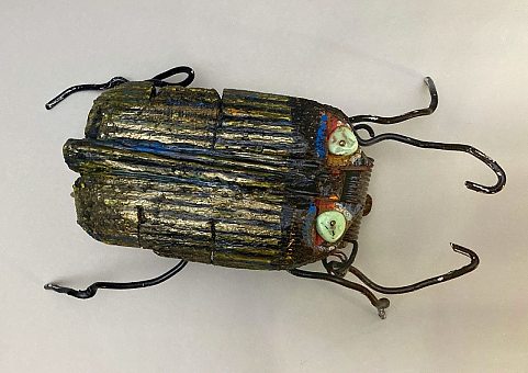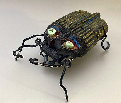 2000: En række fantasifulde skarabæer af bemalet, blandet materiale. Meister har fremstillet cirka 20 forskellige, med eller uden fod, hvoraf de fleste er solgt, og ikke kan vises her.  Sig til, hvis du har en af disse skarabæer. |