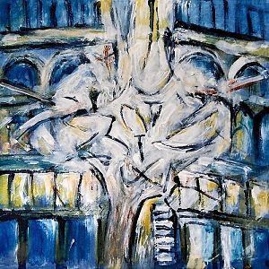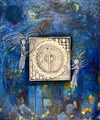 2005: Blå globe (2 engle drejer kosmisk hjul med håndsving) 90×75 cm |