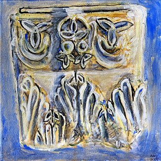 2015: Todelt kapitæl med lilje, lotusblomst, solhjul og evighedsknude Omkr. 850 (40×40 cm) |