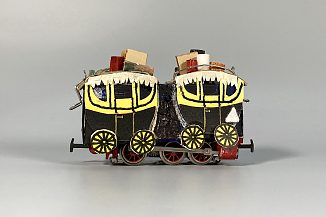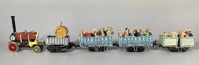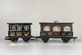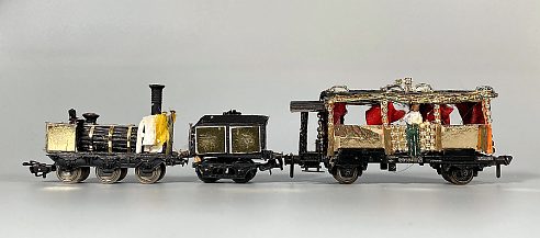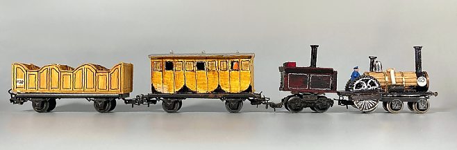 De elektriske modeltog i handelen passede ikke til 1800-tallet, så alle er blevet ombygget efter historisk forlæg, både lokomotiver og vogne. Enkelte har kunnet nøjes med ny bemaling, men i de fleste tilfælde er kun den oprindelige bund med hjul tilbage, resten er fornyet.