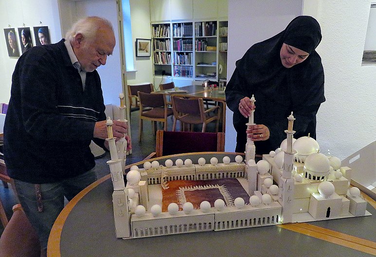 ![]() Modellen bliver opstillet i Galleri ved Kirken (med sagkyndig hjælp) |