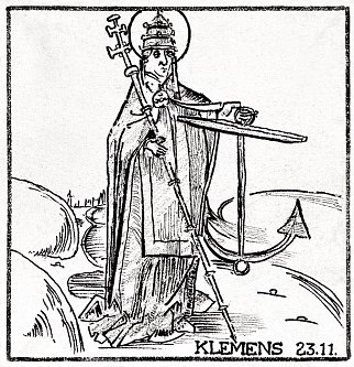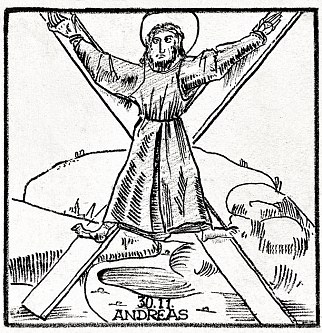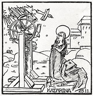 Motiverne er træsnit fra bogen "Das Passionael", den nedertyske udgave af "Leganda Aurea", trykt i Lübeck 1492. Billederne er gengivet som små vignetter i Ture Gads bog "Helgener. Legender fortalt i Norden" fra 1971, og det er herfra, Meister har tegnet dem og tilføjet datoer og navne.