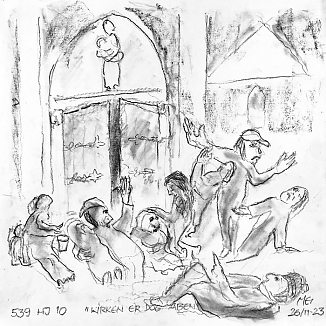 Meister har gennem årene haft hjemløse som motiv i mange af sine malerier, fortrinsvis mødt i hjemløseavisen "Hus Forbi". Nu har han søgt bredere efter motiver, og er påbegyndt en serie tegninger af hjemløse, der som vanlig bliver gengivet med respekt og empati.