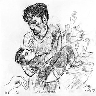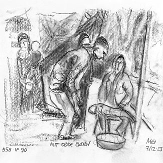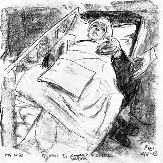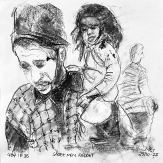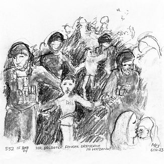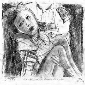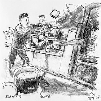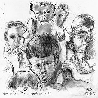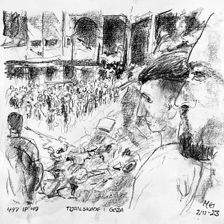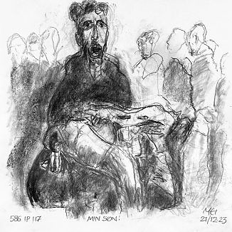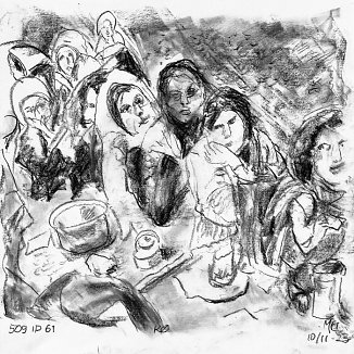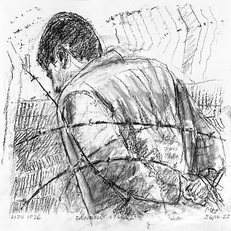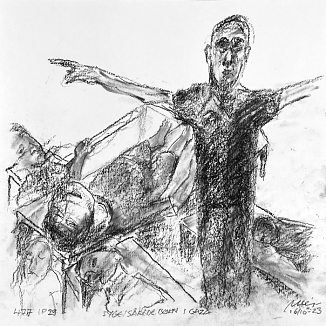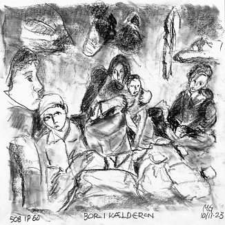 Kul på papir ca. 29×29 cm. Seneste tegninger øverst!