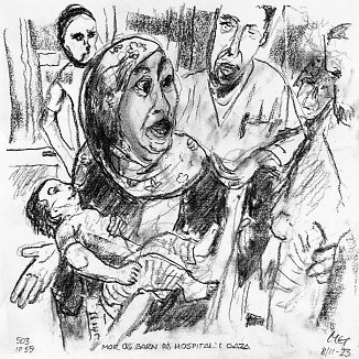 Mor og barn på hospital i Gaza |