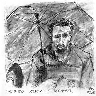 Journalist i regnvejr |