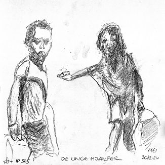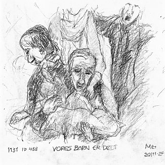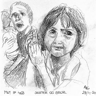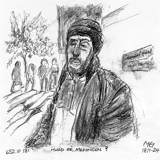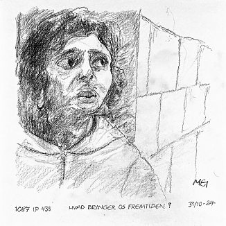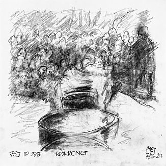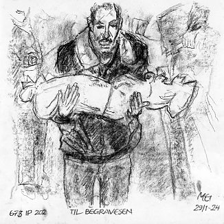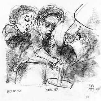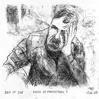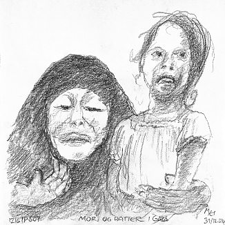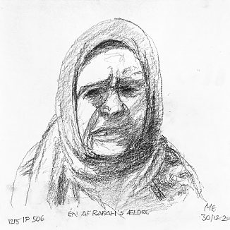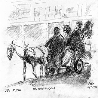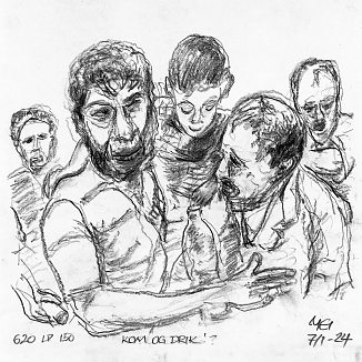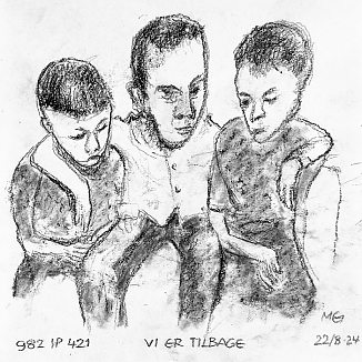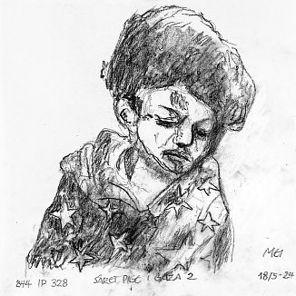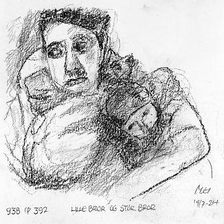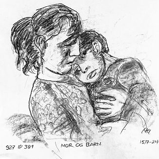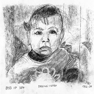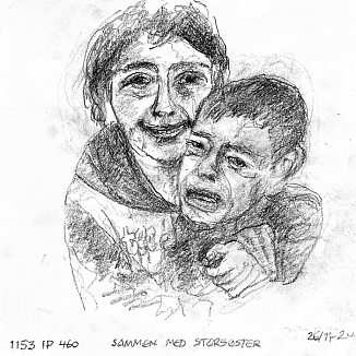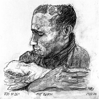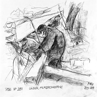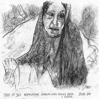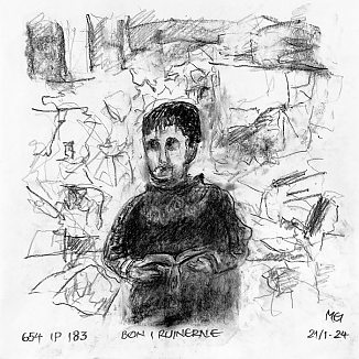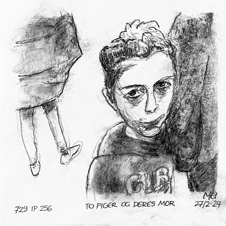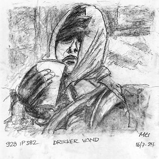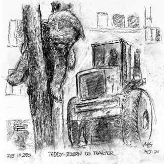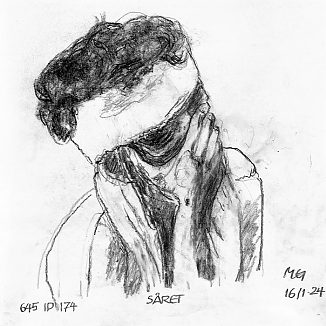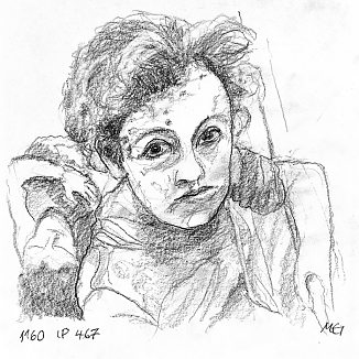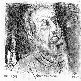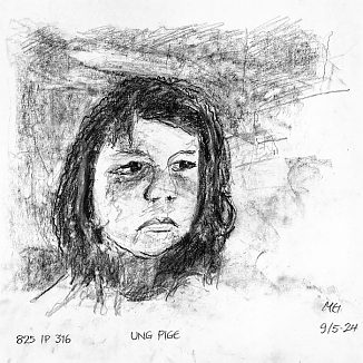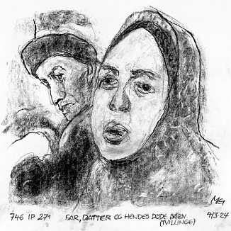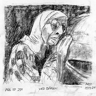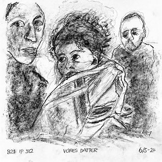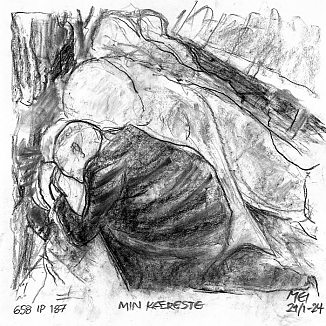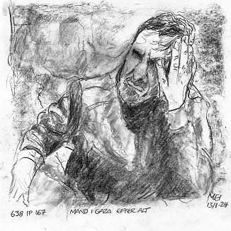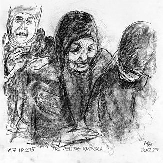 Blyant og kul på papir cirka 29×29 cm. Seneste tegninger øverst!