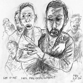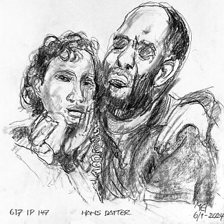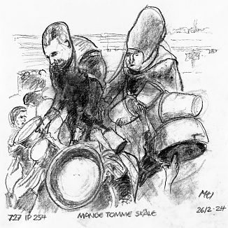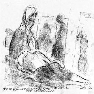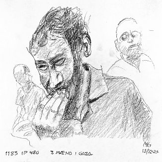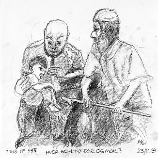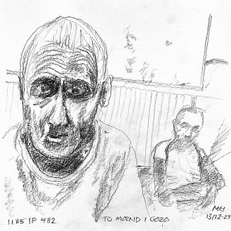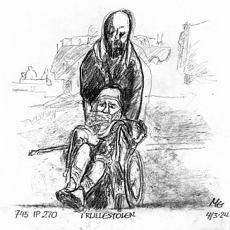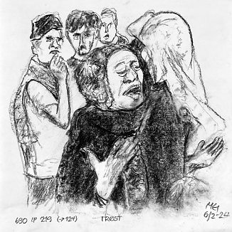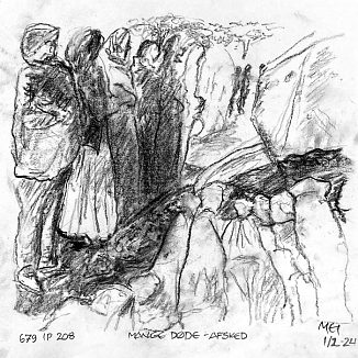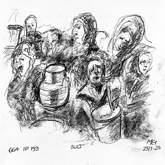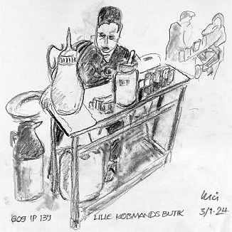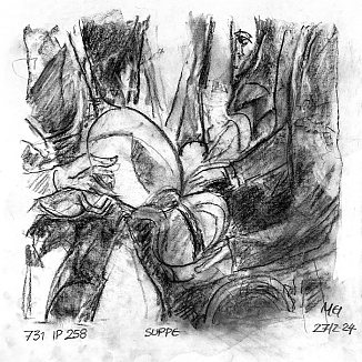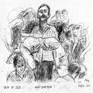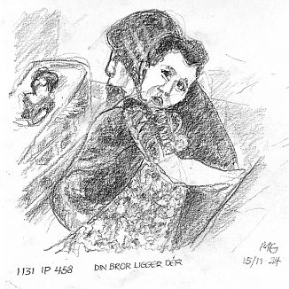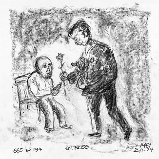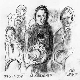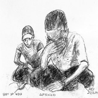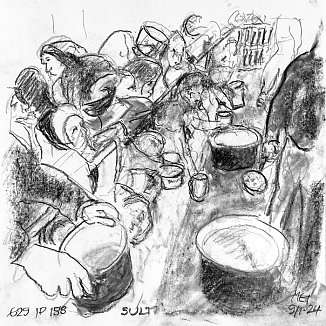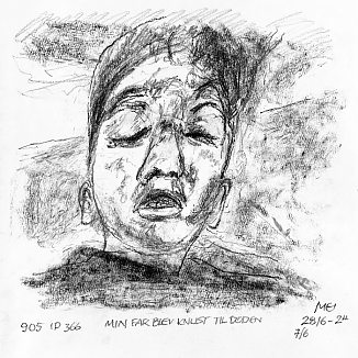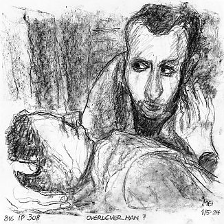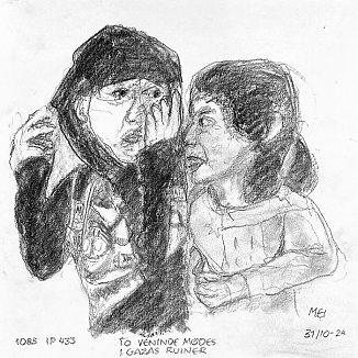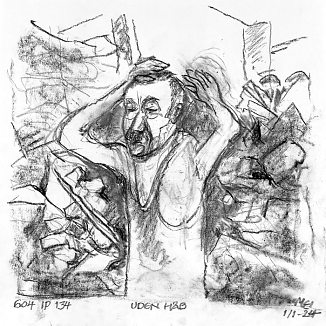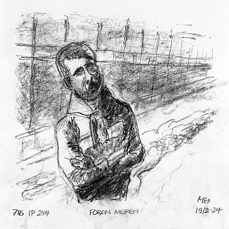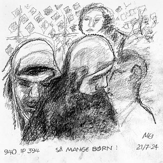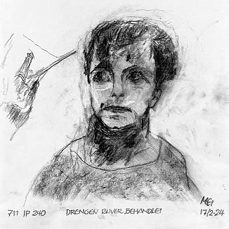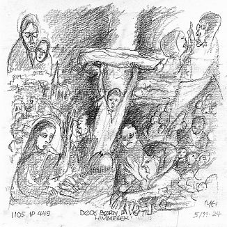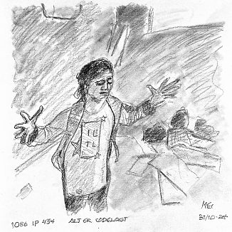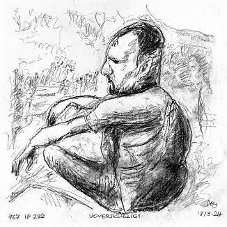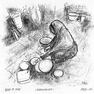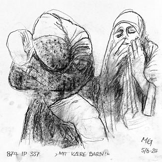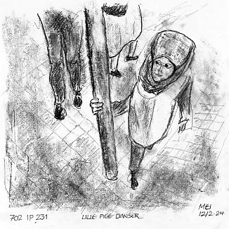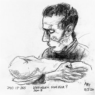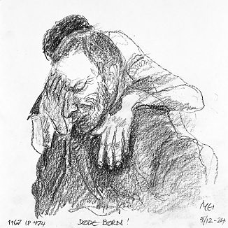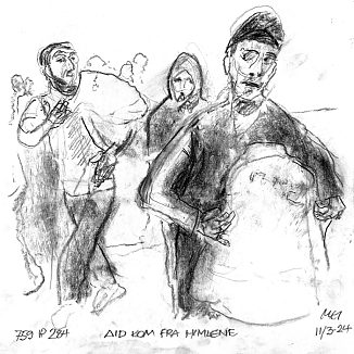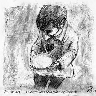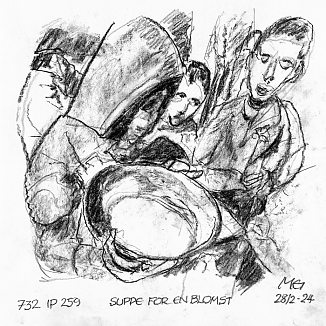 Blyant og kul på papir cirka 29×29 cm. Seneste tegninger øverst!