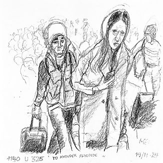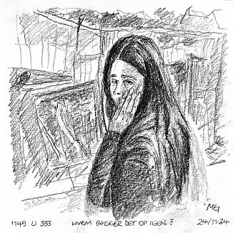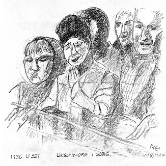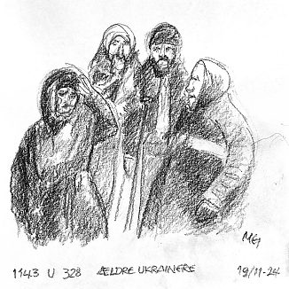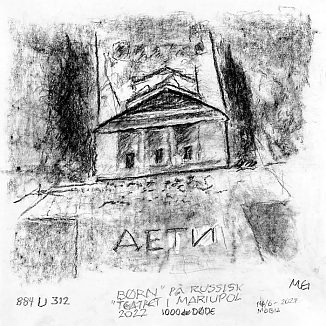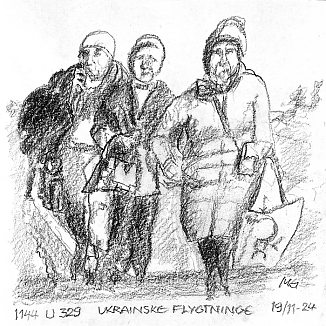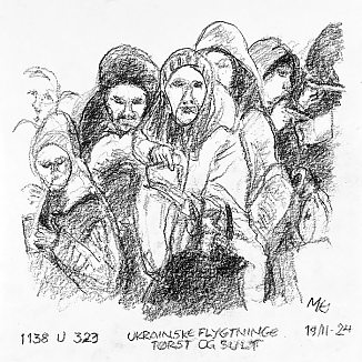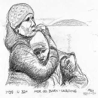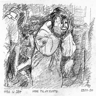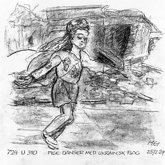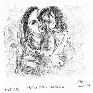 Blyant og kul på papir cirka 29×29 cm. Seneste tegninger øverst! |