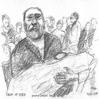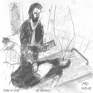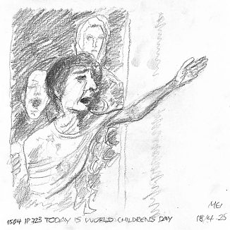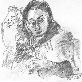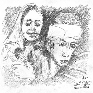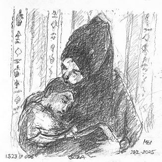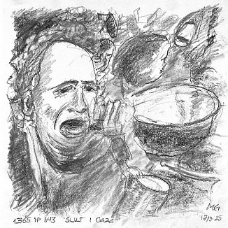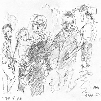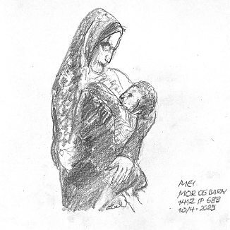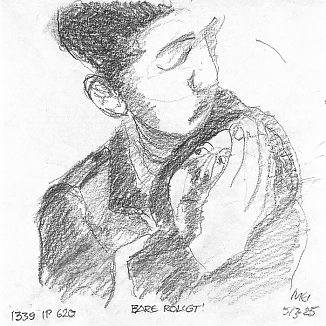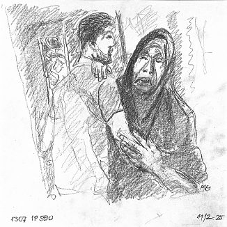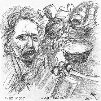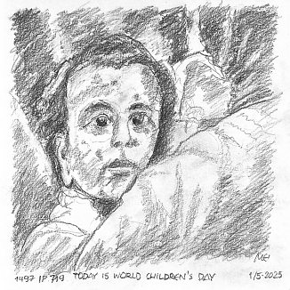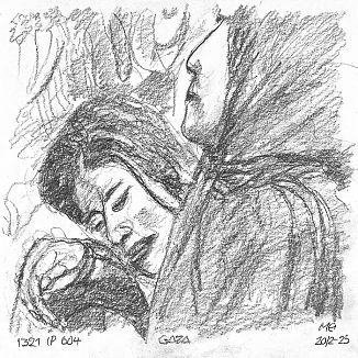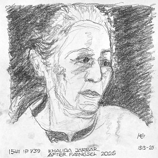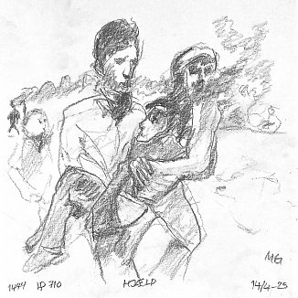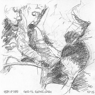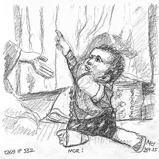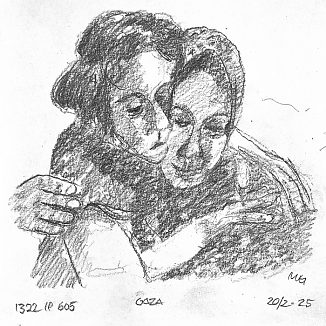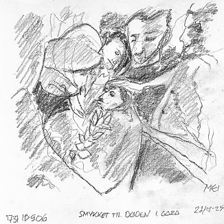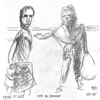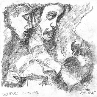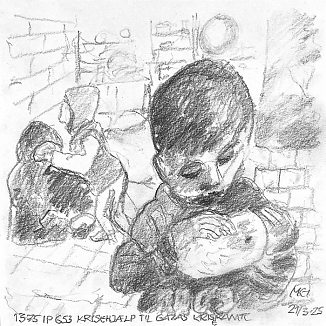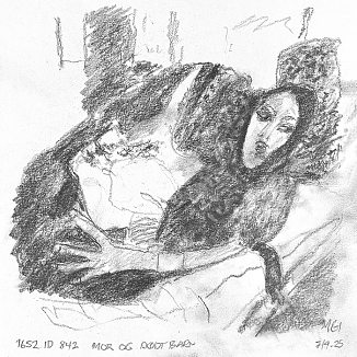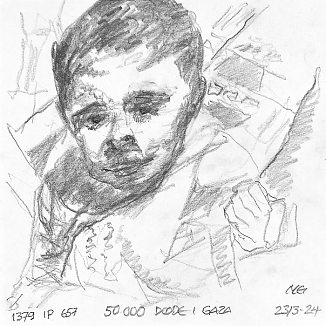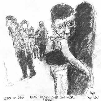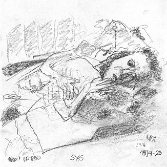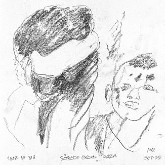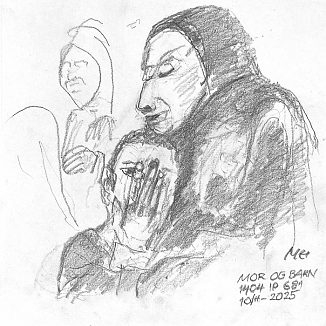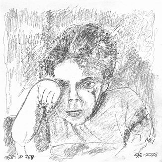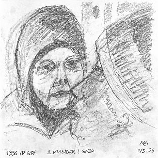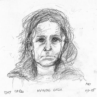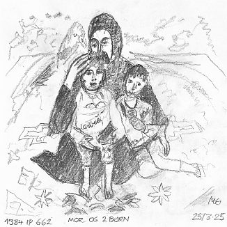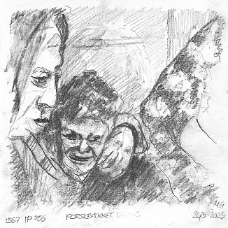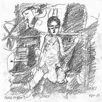 Blyant og kul på papir cirka 29×29 cm. Nyeste tegninger vises øverst!