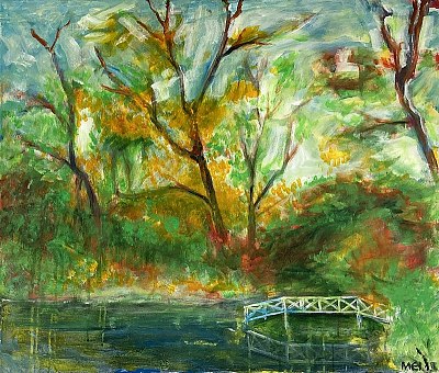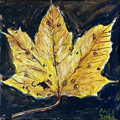 Efterårsblade på Karen Blixens grav monteret på lærred 30×30 cm |