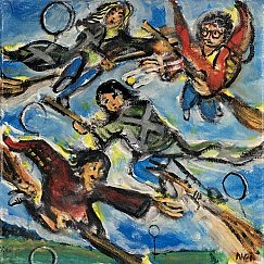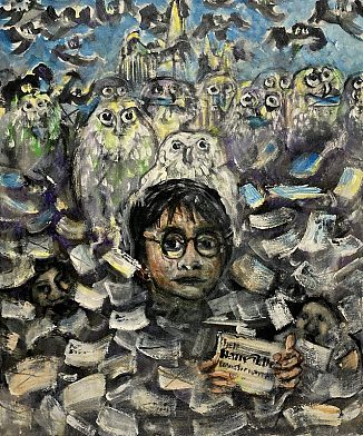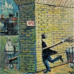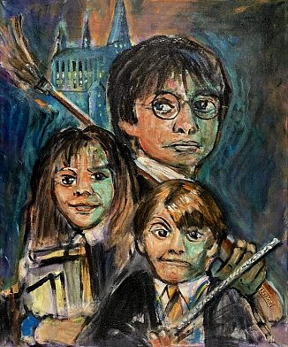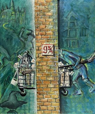 Harry Potter-feberen ramte Verden omkring årtusindskiftet. Den første bog udkom i 1997 (DK 1998), og da Meister malede disse billeder i sommeren 2002 var udkommet yderligere tre bøger og en film om dette mystiske og fascinerende univers.